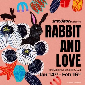 Merayakan kedatangan Tahun Kelinci, 2madison Gallery, galeri seni yang terletak di Jalan Bangka Raya, Jakarta Selatang menggelar pameran bertajuk Rabbit & Love. Pameran bergulir dari 14 Januari hingga 16 Februari 2023 dan menampilkan karya-karya seniman baru Bebe Wahyu (@bebewahyu), Angga (@lowpop_), Don Bosco Laskar (@donboscolaskar), Nana Mardina (@nana_mardina), Sunny Jung (@art.sunny_), Stefany Zefanya (@staveze_), Tulus Mulia (@tulus.mulia), dan Zeta Ranniry (@zetaranniry).