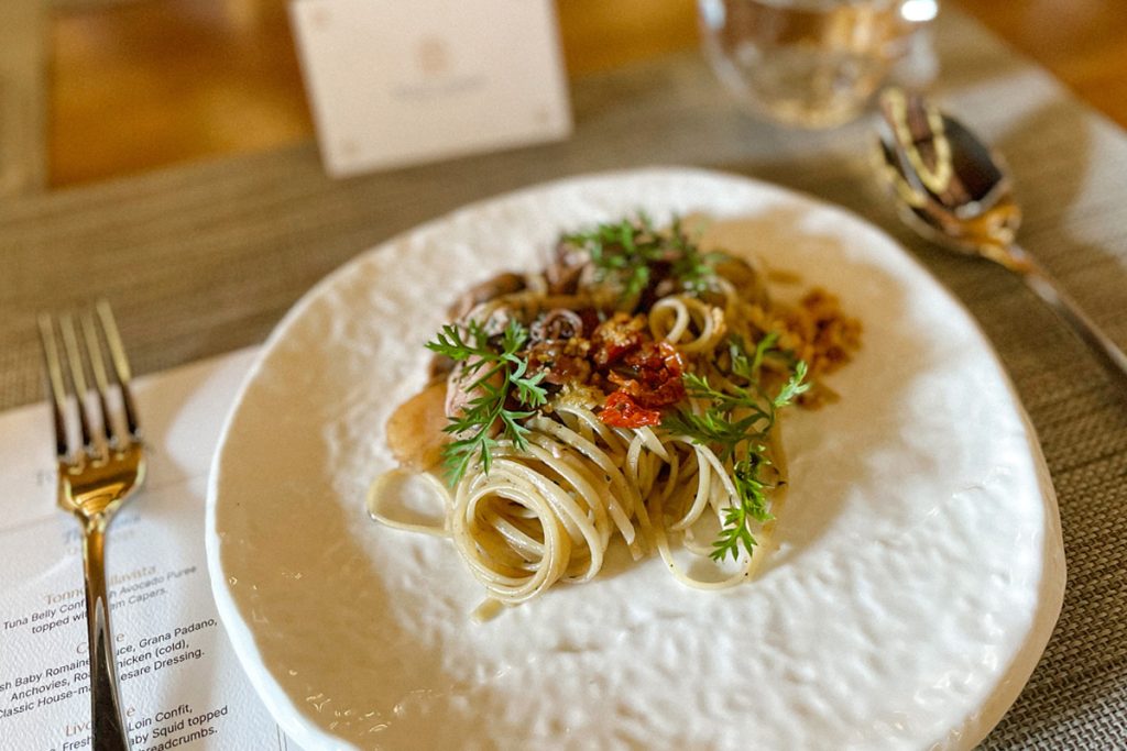 Sekarang, Toscana tak hanya menawarkan menu seperti pasta dan piza, namun juga sederet hidangan utama Italia lainnya. Beberapa makanan yang wajib dicoba di antaranya Livornese, pasta mirip aglio olio dengan irisan tuna loin confit, kerang Hokkaido, baby squid dan remah roti artisanal. Kemudian ada steik dry aged dengan daging sapi grain-fed black angus MB4+ dari Australia lalu dihidangkan dengan olahan kacang cannellini, dan saus peppercorn hijau yang menggoyang lidah. Jangan lupakan juga Tiramisu sebagai hidangan penutup.