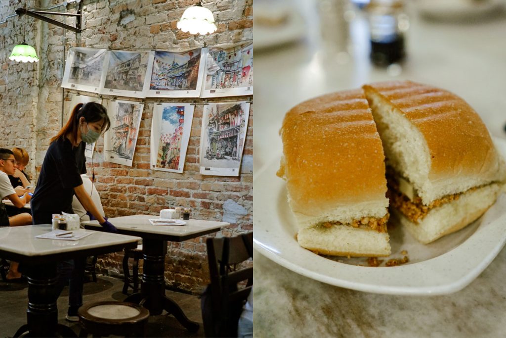 Sebagai kedai kopi khas Melayu, menu yang ditawarkan rata-rata mirip dengan kedai lain, umpamanya mi goreng, nasi lemak, roti bakar, aneka kopi, dan dim sum. Namun, yang merebut hati saya adalah Butter Peanut Bun yang menjadi ciri khas mereka. Yang membedakan roti bakar lapis selai ini dengan kedai lain adalah mereka menggunakan roti tawar tebal namun bertekstur lembut. Di antara dua roti yang dibakar di atas arang tersebut, disajikan potongan mentega dingin, remah-remah kacang, dan selai kaya. Perpaduan antara rasa asin mentega dan gurihnya kacang serta selai kaya yang manis dan roti empuk terasa sempurna di mulut. Salah satu pengalaman sarapan terbaik yang pernah saya rasakan.