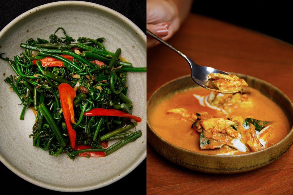 Saya memilih menu Heritage untuk makan malam. Daftar menunya panjang, berisi pilihan lebih dari 10 hidangan. Heritage menampilkan makanan-makanan yang diambil dari berbagai wilayah di Thailand, misalnya ngob talay, hidangan mirip pepes asal Thailand tengah yang terbuat dari udang, kepiting, dan ikan kakap merah; gang pu bai cha plu, sayur kari kuning khas Thailand selatan bercita rasa pedas dan asam; hingga pad pak goot, tumis sayur pakis muda yang difermentasikan dengan getah kedelai yang menjadi favorit saya.
