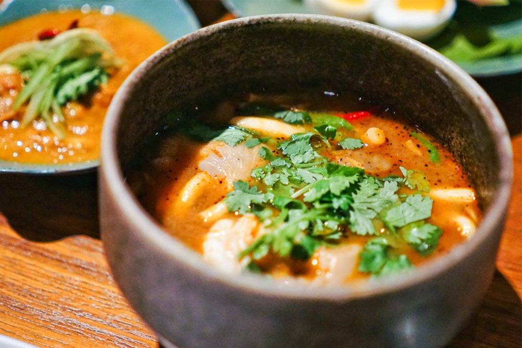 Untuk melahirkan menu baru nahm, Pim menggali inspirasi dari kunjungannya ke pasar-pasar tradisional serta mengorek resep-resep warisan keluarga. Lalu, guna mencapai misi tersebut, Pim bersikukuh untuk tetap menggunakan teknik masak dan presentasi ala Thailand. Hasilnya: sajian khas Thailand kaya rasa.